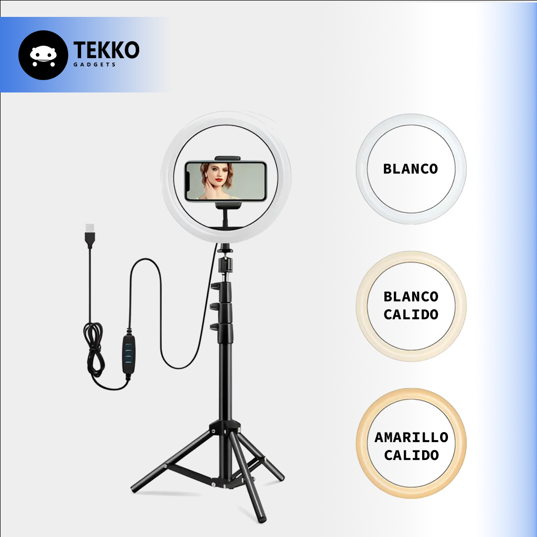 Este Aro de Luz de 26 cm con 3 tonos de luz te da la iluminación ideal en todo momento 🎥✨